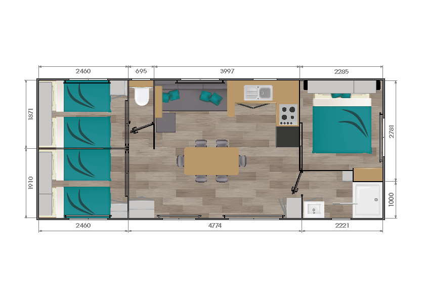 Le LOUISIANE Corail est une invitation au confort grâce aux larges espaces qu’il offre, aussi bien dans le salon, la cuisine ou les chambres. La cuisine contemporaine disposée en forme de « L » est ouverte sur un très vaste séjour. De nombreux rangements sont répartis dans les différentes pièces de vie.